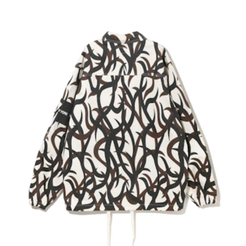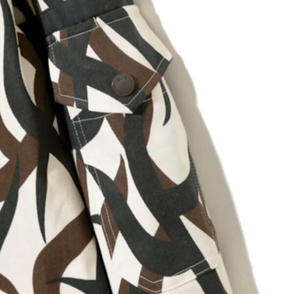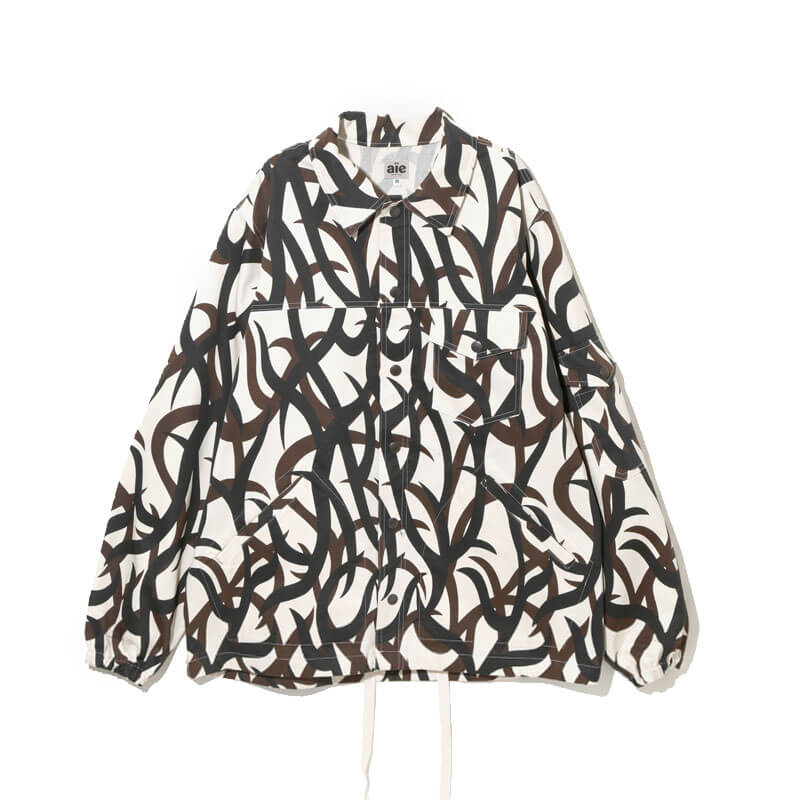 AÏE JeanC Jacket – Printed Off White: A classic jacket with a unique design that looks like a combination of a jean jacket and a coach jacket. This season, we have released a playful design using light ounce denim material in various color combinations.
