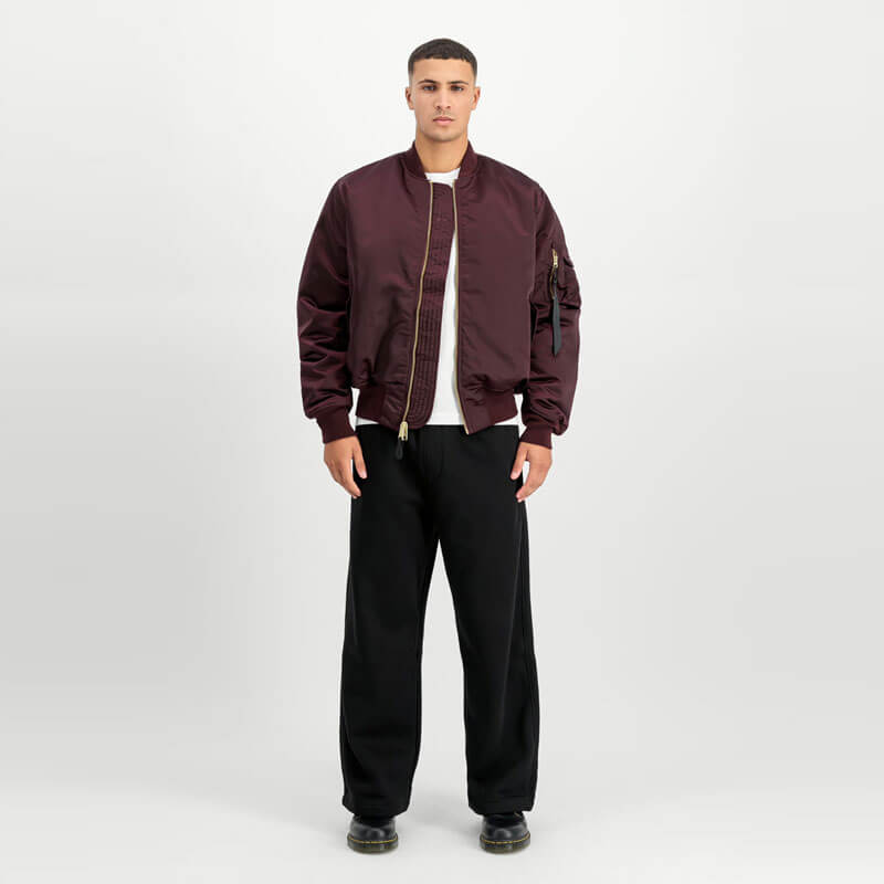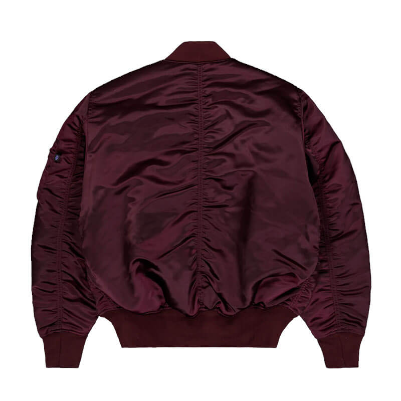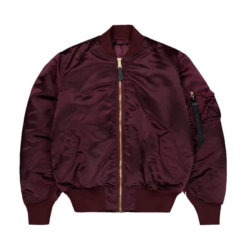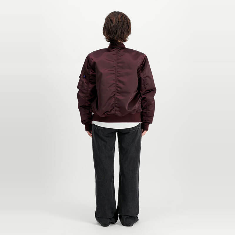 Delivered for Spring25 Ultra Violet collection, this ALPHA INDUSTRIES UV MA-1 Base Flight Bomber Jacket – Dark Cherry features: