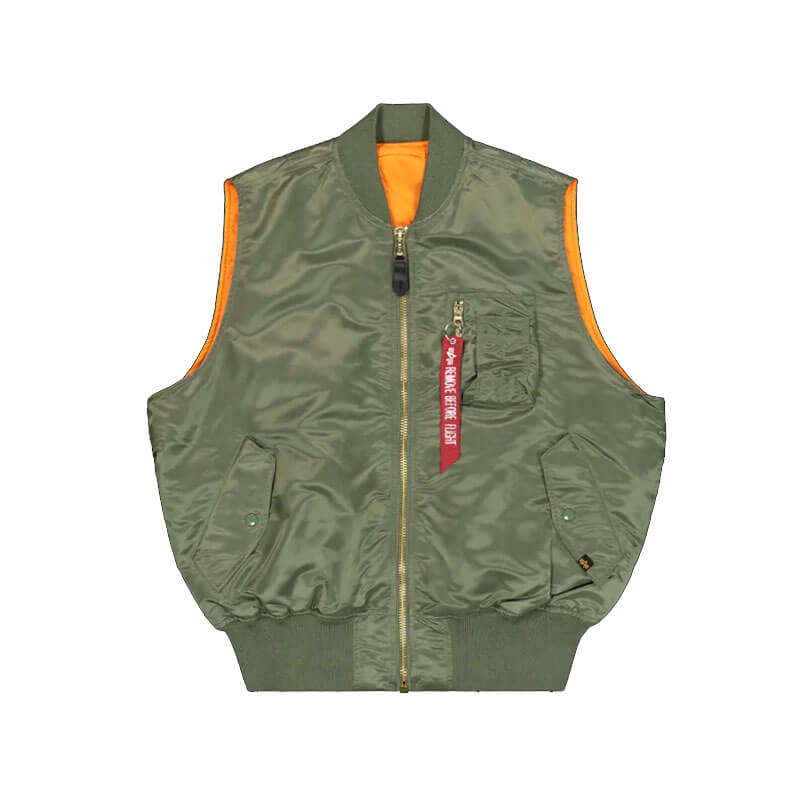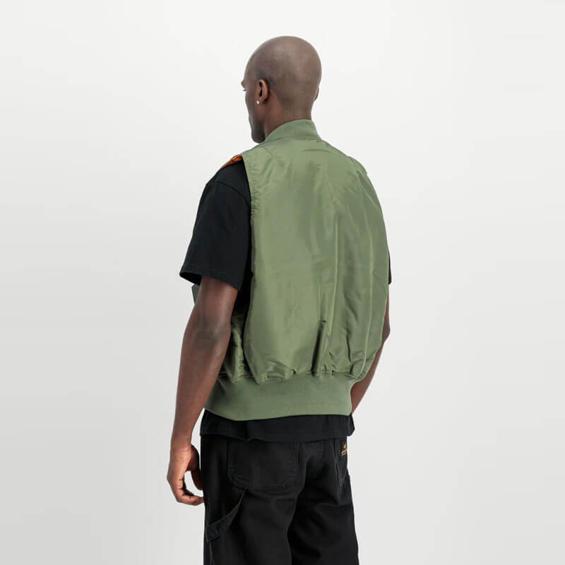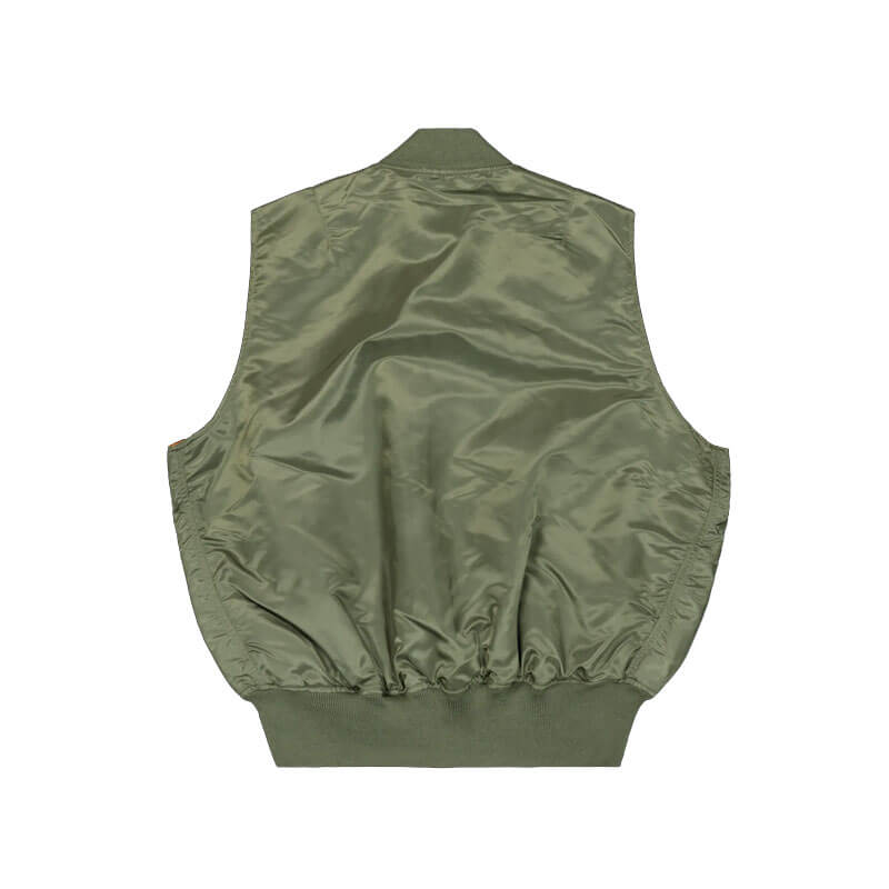 Delivered for Spring25 Ultra Violet collection, this ALPHA INDUSTRIES MA-1 Heritage Vest – Sage Green features: