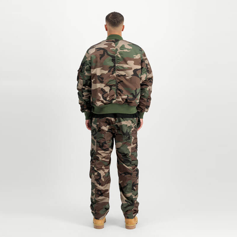 ALPHA INDUSTRIES MA-1 Primaloft Flight Camo Jacket – Woodland: Stay ahead of the fashion game with the MA-1 Base Flight Jacket from Alpha Industries. This men’s bomber jacket has been meticulously designed to offer style, comfort and functionality all in one. Crafted from 100% nylon, this core fit jacket boasts a high GSM of 200 g/m², ensuring robustness and longevity – an investment piece that will serve you for years to come. The lustrous exterior lends a sophisticated sheen while offering durability and resistance against daily wear and tear. One of its standout features is its 3M™ Thinsulate™ Padding that not only adds an extra layer of warmth but also provides adequate insulation during harsh weather conditions. So whether you’re bracing the winter chill or caught in an unexpected downpour, this jacket has got your back.