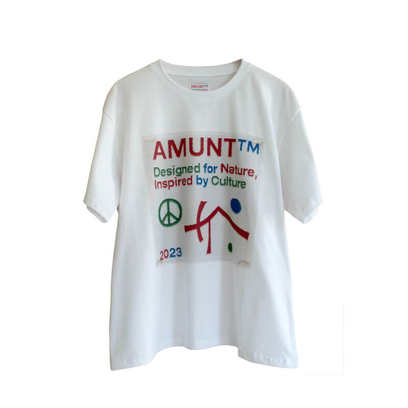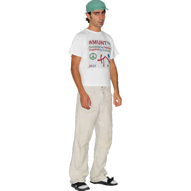 AMUNT™ Masive Label Tee – White: Short sleeve tee made from 100% organic cotton. This t-shirt features the AMUNT label, typically functional and unseen, is elevated to the forefront, no longer a supporting detail but the subject itself. Crafted in a local atelier in Mataró, near Barcelona, this piece reflects Amunt’s commitment to thoughtful production and proximity manufacturing.