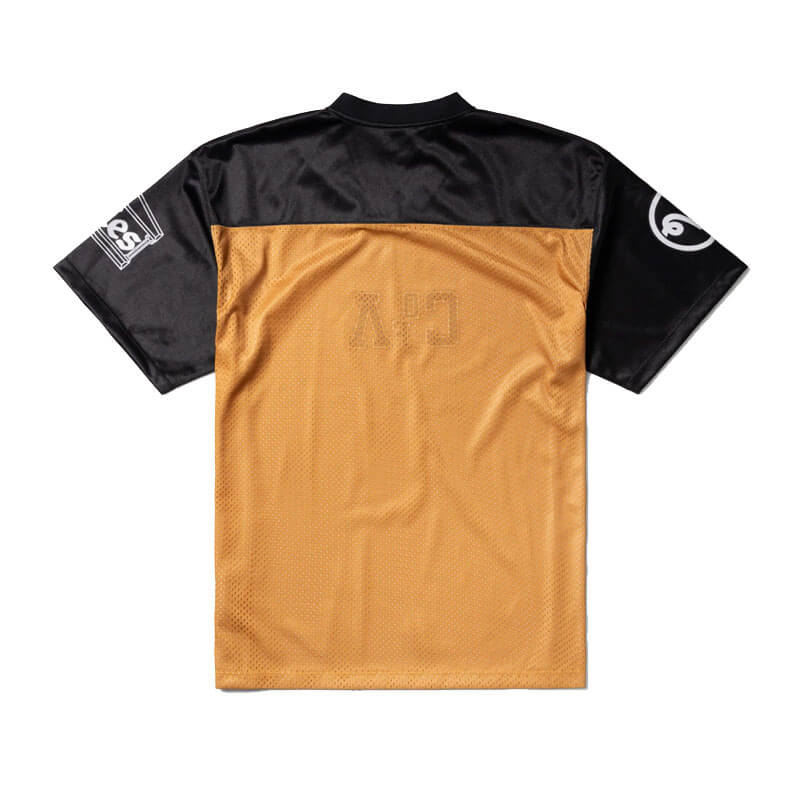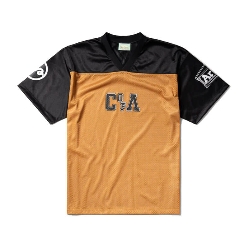 ARIES American Football Airtex Tee – Multi: Unisex short sleeve football jersey made from a mix of shiny polyester airtex mesh & single jersey. With ‘Cult of Aries’ team graphics plastisol printed on the front and sleeves.