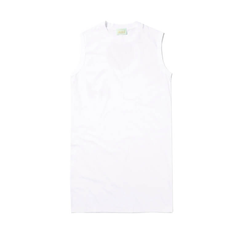 ARIES Confused Vest Dress – White: 100% cotton jersey vest dress featuring a second neck hole with Temple print on the back. Included in Aries’s SS23 collection, this Confused Vest Dress – White features: