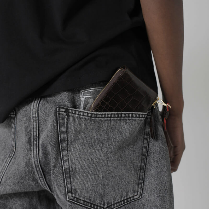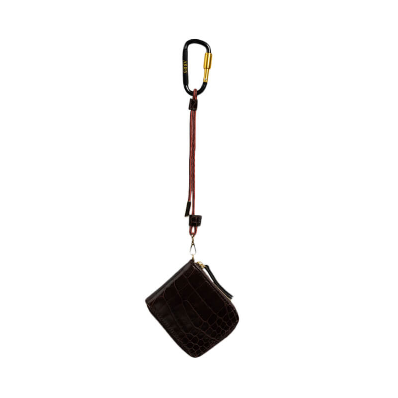 ARIES Leather Wallet – Crocodile: Leather wallet made from premium Italian cowhide. Embossed with a gold tone Aries temple and with a chain and branded carabiner to clip onto your belt.