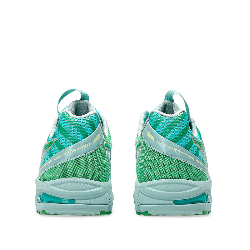 ASICS UB9-S Gel-DS Trainer 14 – Waterfall / Litchen Rock: Curated style by Kiko Kostadinov Studio and ASICS SportStyle development team. The UB9-S GEL-DS TRAINER 14 sneaker draws design inspiration from the ideas of découpage and natural simulacrum. These details reflect nature’s imprint and its impact of discarded and reclaimed objects in natural landscapes. Opaque and bright colors are contrasted with matte hues to highlight the connection between nature and humanity. The upper’s layered materials are symbolic of fossils and petrology while the moiré surfaces reflect the surfaces of ready-made everyday objects. This midsole’s tooling shape features a sleeker construction that’s met with comfortable cushioning properties. Its lightweight design is also paired with a TRUSSTIC support unit for stability and rearfoot GEL technology for impact absorption.
