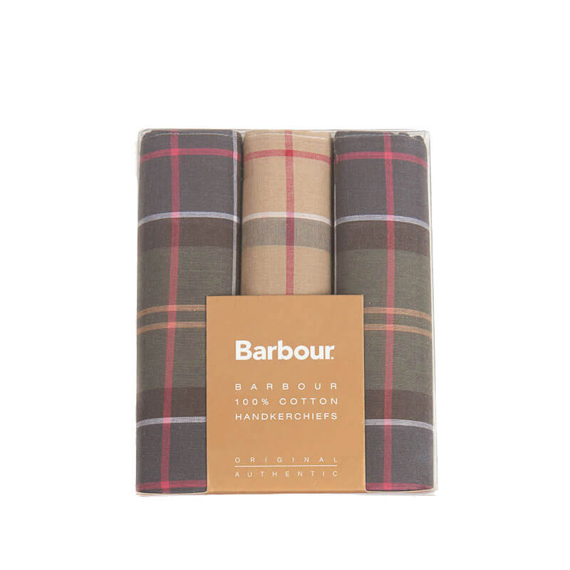 BARBOUR Handkerchief Pack – Assortment Tartan: This boxed set comprises three square handkerchiefs in a combination of Barbour’s iconic tartans making for the perfect gifting selection.