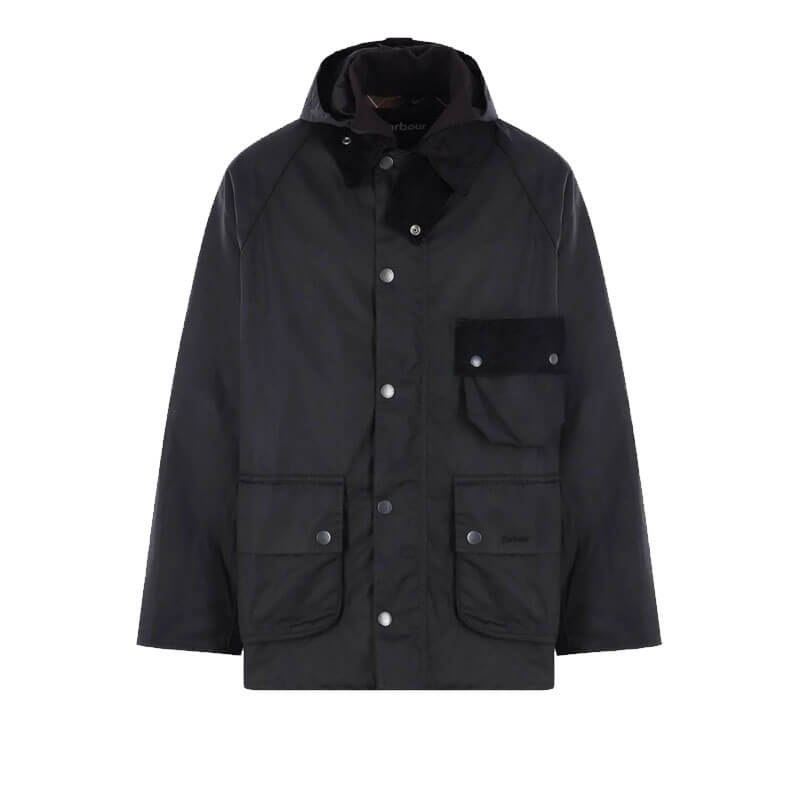 Included in the first delivery of Fall25 of British cult brand, this BARBOUR HERITAGE+ Modified Solway Wax Jacket – Black features: