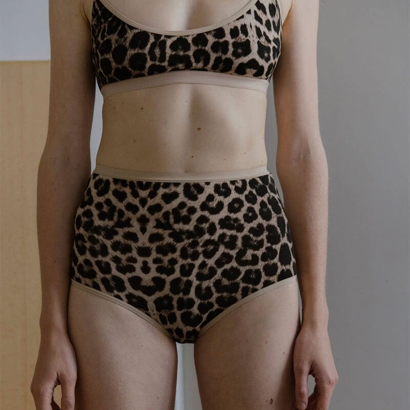 BASERANGE Highwaist Bell Pant – Leopard: Recycle cotton rib bra with three thin straps with adjustable beads. Elevating your everyday underwear, this rib bra from Baserange is both comfy and supportive. Consciously crafted in Portugal from recycle cotton, this BASERANGE Highwaist Bell Pant – Leopard is included in the last Spring-Summer23 collection and features: