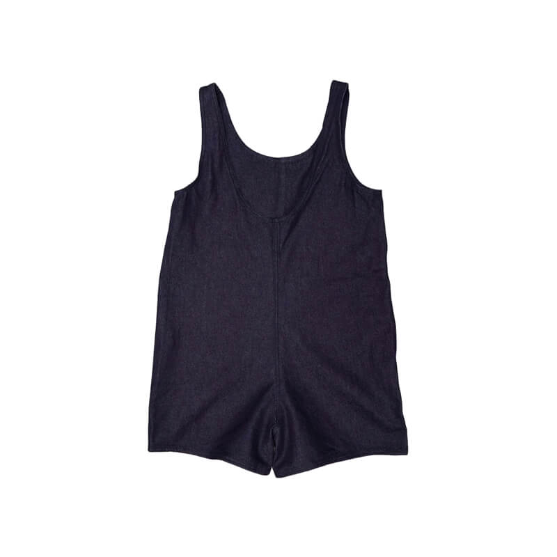 BASERANGE Tank Romper – Raw Denim: Wild silk jumpsuit crafted in wild silk. This Baserange jumpsuit features an open back and multiple ways of fastening.