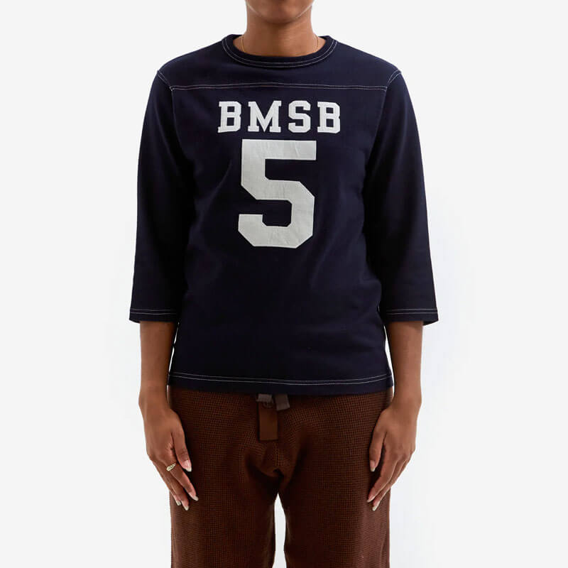 Included in the first delivery for Fw24 of the Japanese brand for THEROOM, this BEAMS BOY Knit Football 3/4 Tee – Grey features: