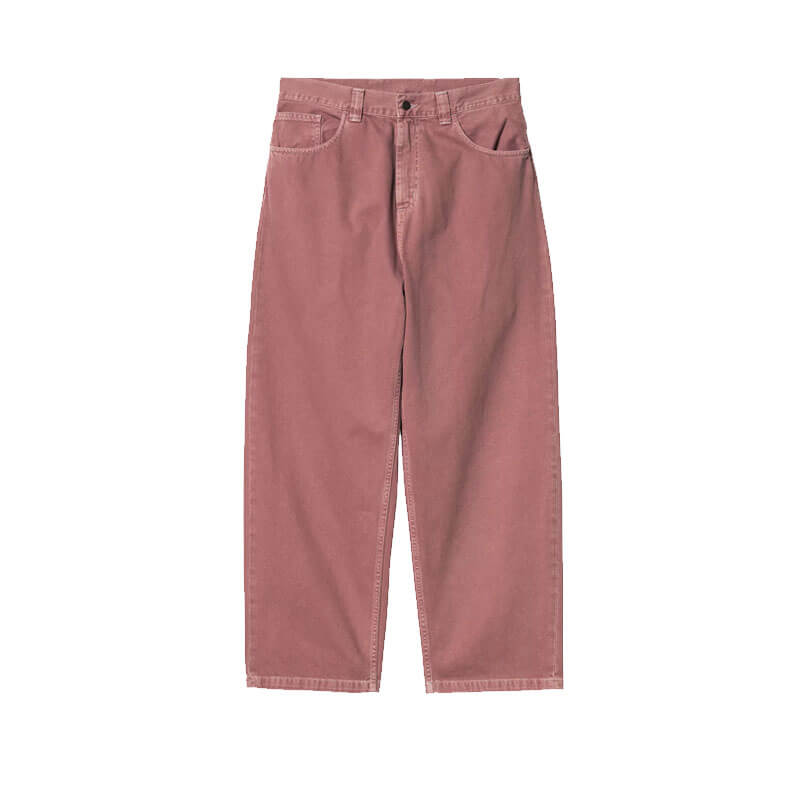 CARHARTT WIP Brandon Pant – Dusky Pink: The Brandon Pant is a five-pocket style made from heavyweight cotton twill, which has been stone-dyed for a soft, worn-in feel and distinctive patina. The pant has a loose straight fit with a low crotch. Detailed with subtle contrast stitching, the item also has bartack stitching at vital stress points for added durability. A woven Square Label appears at the back.