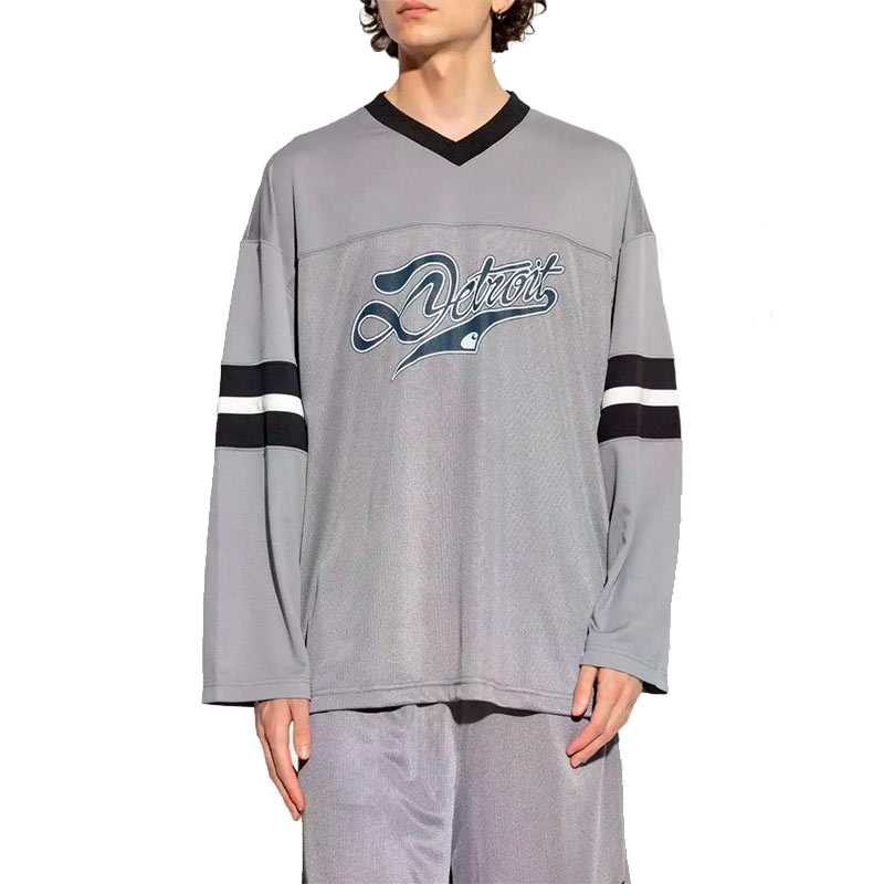 CARHARTT WIP Detroit Mesh Tee – Yosemite / Black / Wax: Longsleeve tee made from polyester jacquard in a loose fit, and has a contrasting piqué© upper body and sleeves. The sleeves also feature contrast color inserts. A graphic print and label appear on the front.