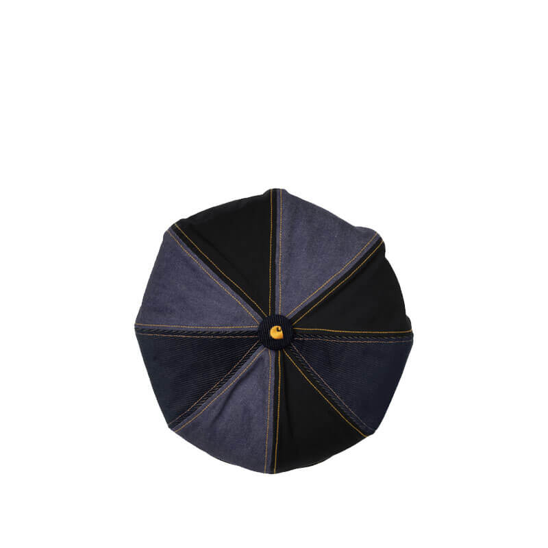 CARHARTT WIP x NICHOLAS DALEY Baker Boy – Ocean Cavern: For Fall/Winter 2025, Carhartt WIP has collaborated with designer Nicholas Daley to create a collection focused on Daley’s core values of community, craftsmanship and culture, while nodding to his own Jamaican and Scottish heritage. The Carhartt WIP x Nicholas Daley Baker Boy is an unstructured hat made from a mixture of polycotton corduroy, denim, and canvas panels, featuring an onion-quilted lining. The item also has a firm peak which can be removed and attached with a snap button. An embroidered ‘C’ Logo appears on the crown.