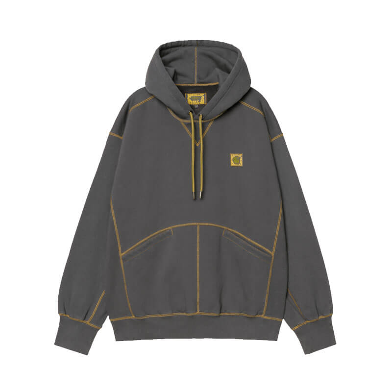 CARHARTT WIP x NICHOLAS DALEY Hoodie – Black Sand / Golden Yellow: For Fall/Winter 2025, Carhartt WIP has collaborated with designer Nicholas Daley to create a collection focused on Daley’s core values of community, craftsmanship and culture, while nodding to his own Jamaican and Scottish heritage. The Carhartt WIP x Nicholas Daley Hoodie is made in a balloon fit from a heavyweight, brushed polycotton jersey featuring a stone-washed, worn-in finish. The item is also detailed with contrast stitching throughout. Welt pockets appear on the front. A co-branded Square Label appears on the chest.