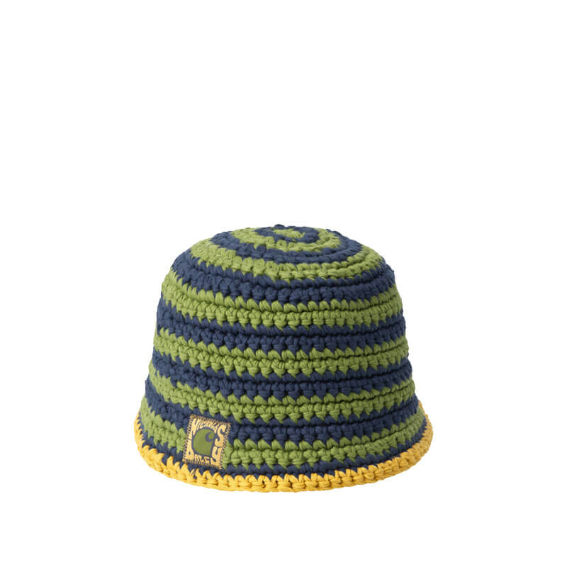 CARHARTT WIP x NICHOLAS DALEY Knitted Hat – Tawny Olive / Cedar Green / Black Iris: For Fall/Winter 2025, Carhartt WIP has collaborated with designer Nicholas Daley to create a collection focused on Daley’s core values of community, craftsmanship and culture, while nodding to his own Jamaican and Scottish heritage. The Carhartt WIP x Nicholas Daley Knitted Hat is a crochet style knit made from a cotton yarn. A co-branded Square Label appears on the brim.