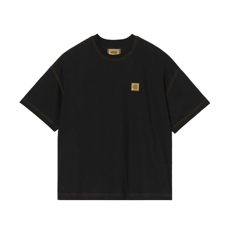 CARHARTT WIP x NICHOLAS DALEY Poster T-Shirt – Black: For Fall/Winter 2025, Carhartt WIP has collaborated with designer Nicholas Daley to create a collection focused on Daley’s core values of community, craftsmanship and culture, while nodding to his own Jamaican and Scottish heritage. The Carhartt WIP x Nicholas Daley Poster T-Shirt is made in a boxy loose fit from midweight cotton jersey. A large graphic print appears at the back, inspired by Daley’s parents’ ‘Reggae Klub’ nights in the late 70s. The item is also detailed with contrast stitching throughout. A co-branded Square Label appears on the chest.