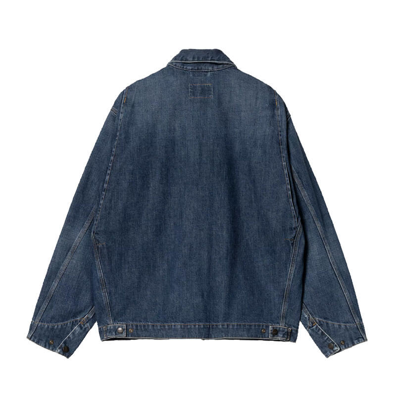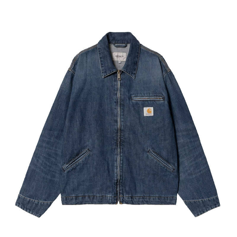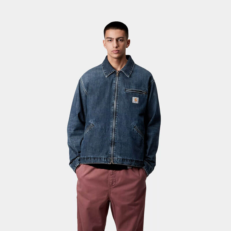 CARHARTT WIP OG Detroit Jacket – Blue Dark Used: The OG Detroit Jacket is made in our original loose fit from unlined, heavyweight cotton denim. The item has a two-way front zip and zipped chest pocket, as well as an inside chest pocket. An adjustable bottom band and cuffs offer a more adaptable fit. A woven Square Label completes the design.
