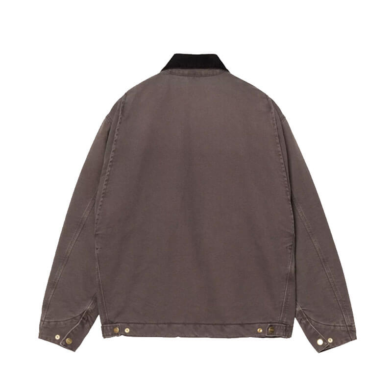CARHARTT WIP OG Detroit Jacket – Tobacco / Black: The OG Detroit Jacket is made in our original loose fit from heavyweight cotton Dearborn Canvas, which has been chalk-washed for a sun-faded effect with strong variations in color on details. Both the body and sleeves are lined for warmth. A corduroy collar, zipped front closure and zipped chest pocket offer tactile detailing. The cuffs and the bottom band are adjustable. A woven Square Label completes the design.