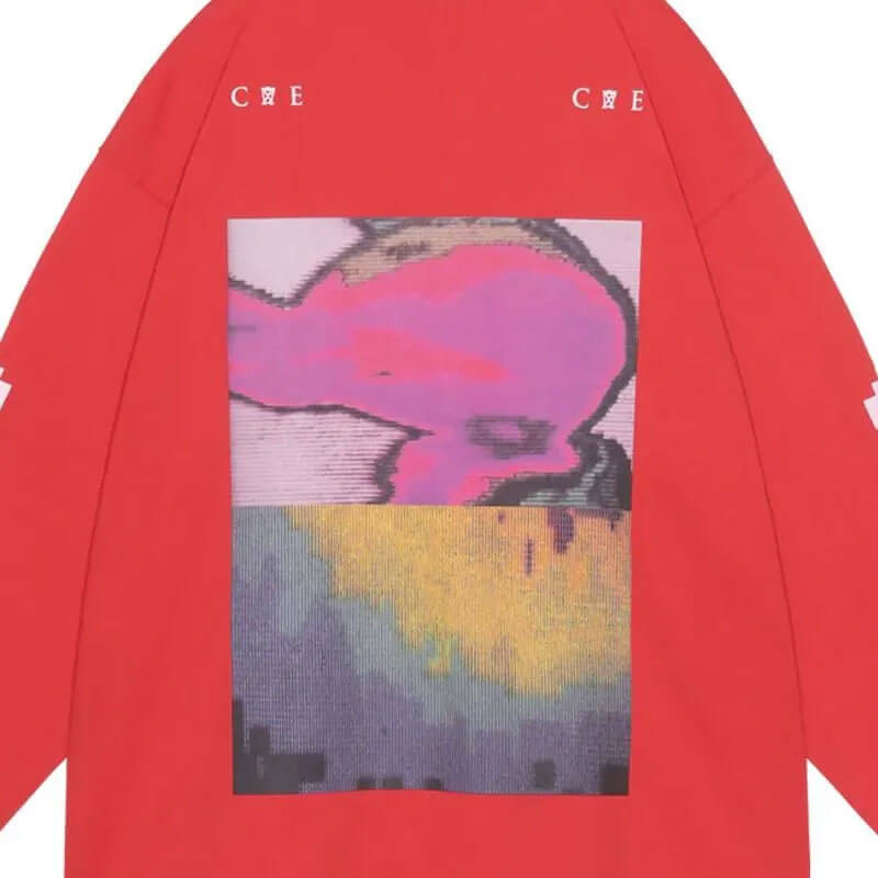 CAV EMPT Dragoonabsorb Light LS T – Red: Long sleeve graphic tee crafted in heavyweight, pre-washed cotton for a structured yet soft feel. Features a large screen-printed graphic on the front, back and sleeves and CAV EMPT branding across the front shoulders. Cut with a signature wide fit.