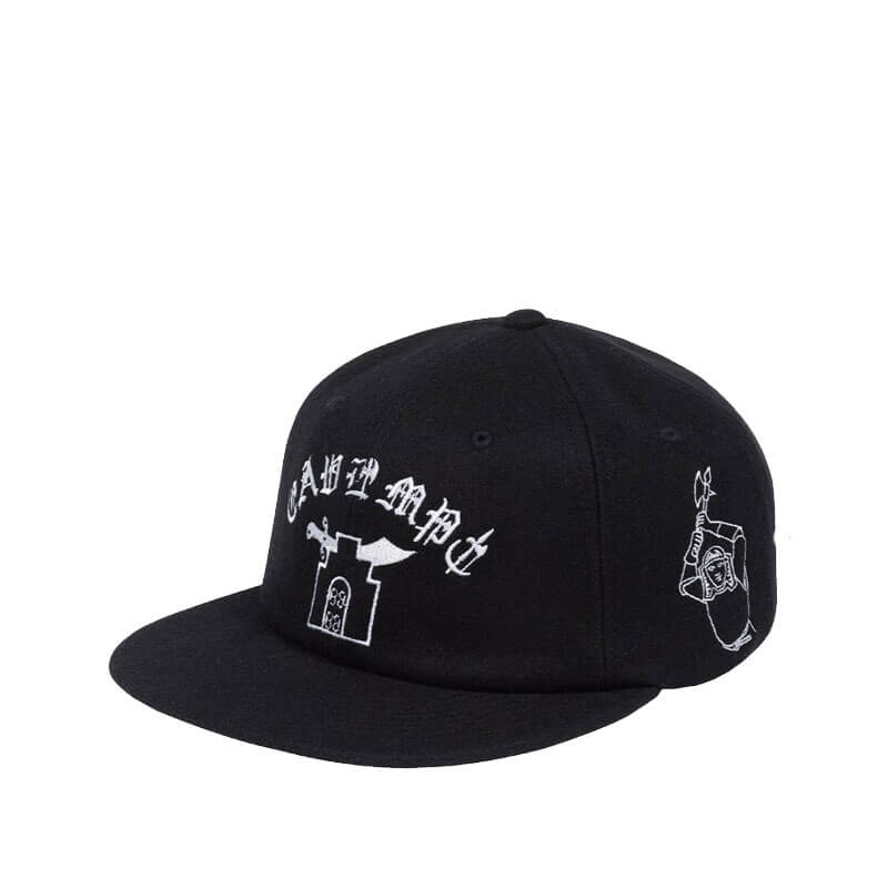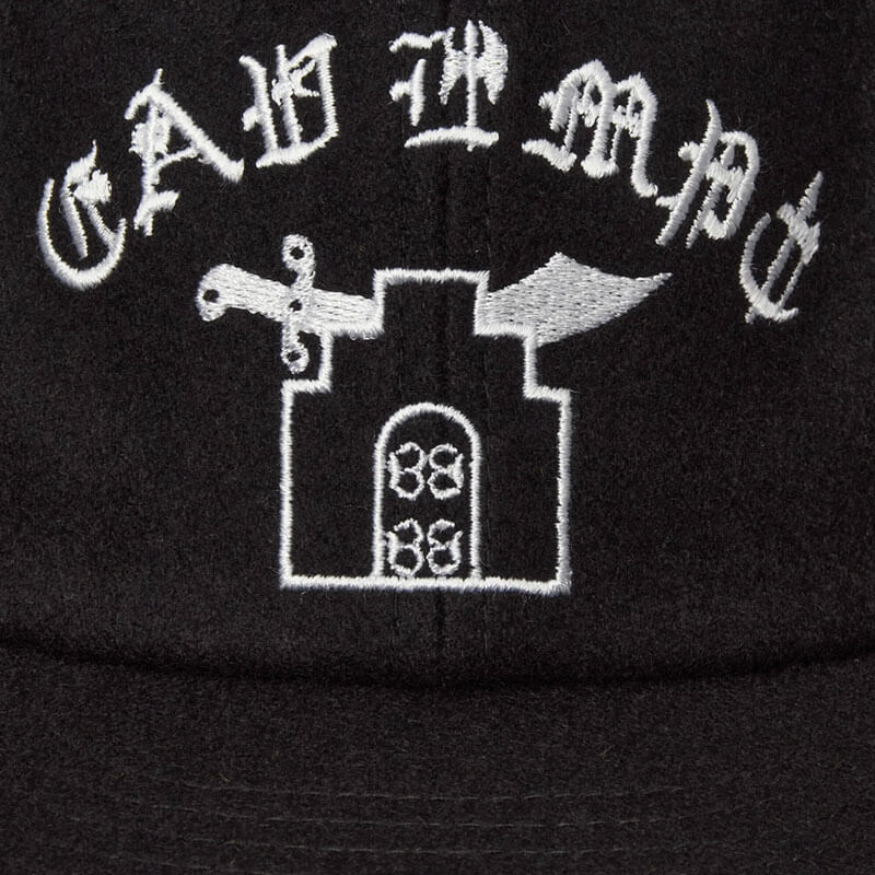 CAV EMPT Gate Of Swords Cap – Black: Constantly reinventing themselves with graphics and visual concepts that combine music, dystopia, and experimental streetwear, Cav Empt represents the pinnacle of the modern Japanese scene. Represented in this 6 panel strap back cap and crafted in rayon and wool blend fabric, this piece is completed with embroidered graphic on front, side and back.