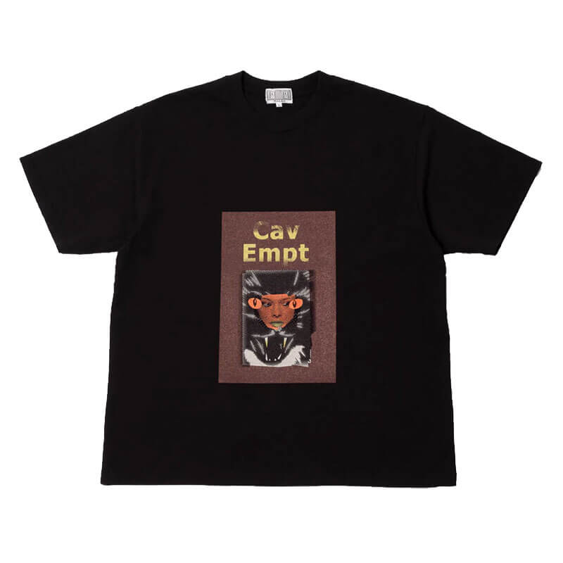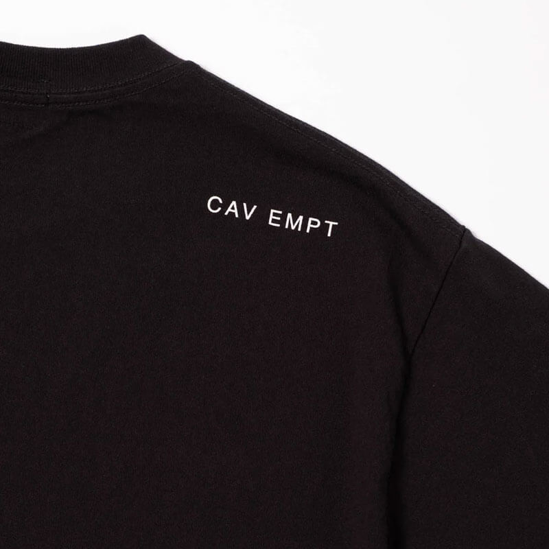 CAV EMPT Mutual Dependence T – Black: Short sleeve graphic tee crafted in a lightweight, pre-washed cotton for a structured yet soft feel. Features a large screen-printed graphic on front and CAV EMPT branding across the front shoulders.