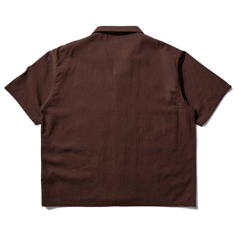 CAV EMPT Soft CW SS Open Shirt – Brown: Short sleeve open collared shirt from Cav Empt’s SS25 collection crafted in cotton. Pre-washed to avoid shrink with a bio process finish.