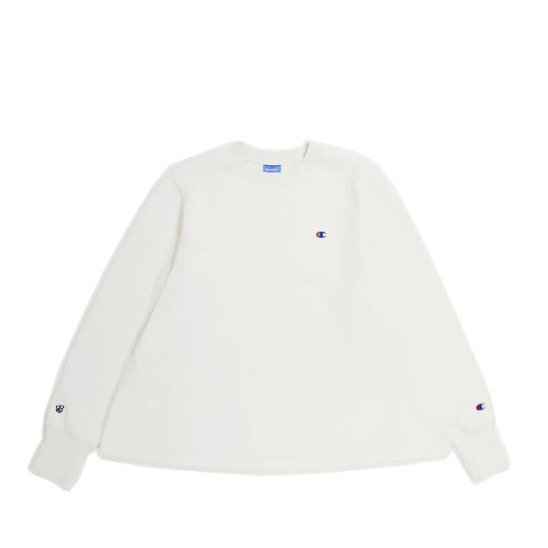 BEAMS BOY for CHAMPION Fleece Sweat – White: Coming together to create a perfect playful mix of wardrobe staples, Beams Boy uses key vintage pieces from Champion’s 100-year history for this exclusive collection. Uniquely cut from the iconic Reverse Weave Fleece, this sweat is a new silhouette for timeless style. Minimally branded, subtle embroidery appears on the chest and sleeves. Included in the last FW23 delivery, this BEAMS BOY for CHAMPION Fleece Sweat – White features: