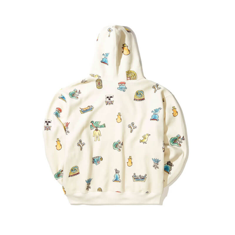 - Washed, all-over print inspired by ancient Latin American codex imagery, making this hoodie a wearable piece of art