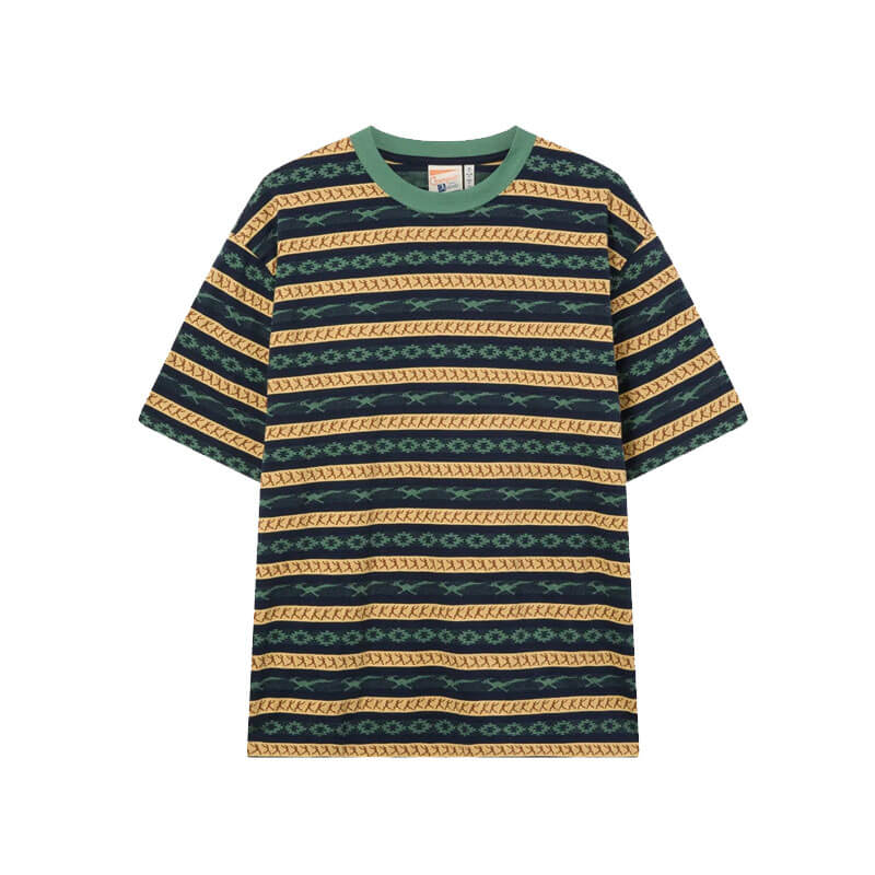 CHAMPION Ghost Ranch Printed Tee – Dark Blue: The Ghost Ranch collection pays homage to the rugged beauty and cultural richness of the American Southwest. Crafted from engineered jersey, this loose-fit crewneck T-shirt offers lightweight breathability and all-day comfort. The bold all-over print draws inspiration from vintage Americana, blending heritage with contemporary style. Designed for those who appreciate authentic craftsmanship and timeless design, this statement piece captures the essence of adventure and tradition.