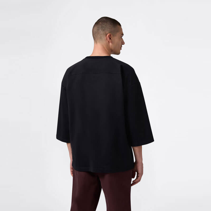 CHAMPION Light House Football Tee – Black Beauty: This 3/4 sleeve crewneck T-shirt with wide sleeves reinterprets the vintage look of American sports uniforms with a modern cut. Made from 300 g/m² nylon-cotton jersey, it blends comfort and structure—perfect for a bold, laid-back style. Part of the Index & Archives Lighthouse line, a project that revisits Champion’s heritage with contemporary flair, bringing archival pieces to life through updated details and proportions.