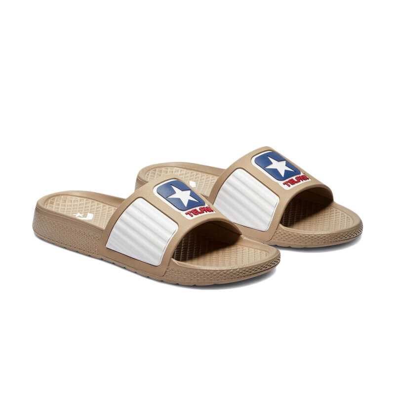 CONVERSE x TELFAR All Star Slide – Nomad / White: Fashion and sport collide on a new unisex collection from designer Telfar Clemens, featuring this casual slip-on sandal inspired by classic basketball style. On this clean and casual slip-on sandal, Telfar applies a hoops-inspired look with a bold graphic and contrast details.