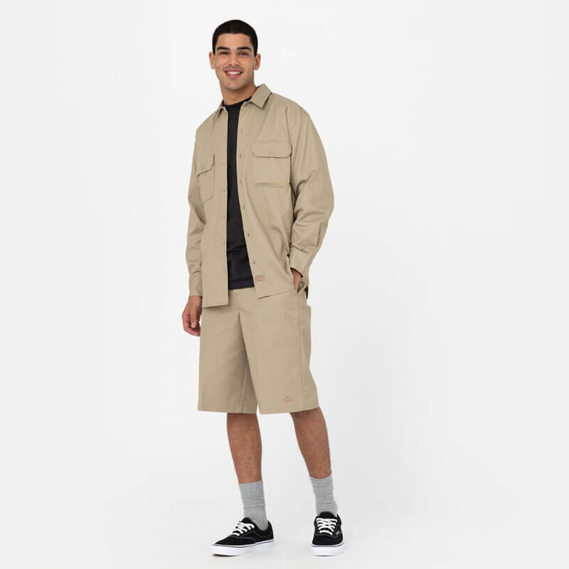 DICKIES 13 Inch MultiPocket Short – Khaki: Work-inspired shorts that sit below the knee and higher on the waist for a cool, casual look. They also come with a multi-tool pocket on the leg to keep essentials safe and secure. Crafted from Dickies’ signature poly-cotton twill fabric, these work shorts are ultra-comfy and built to last. This DICKIES 13 Inch MultiPocket Short – Khaki is included in Spring-Summer 23 delivery and features: