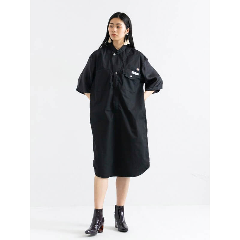TOGA x DICKIES Long Shirt – Black: TOGA teams up with Dickies to put its own spin on some of the brand’s most iconic workwear. The shirt is based on the model 574 on Dickies® and is crafted in the American brand’s twill fabric with cupra fabric on sleeves. Also the shirt features attached flap pocket and western motif from element of TOGA. It can be worn as a dress with making the length longer than original design.