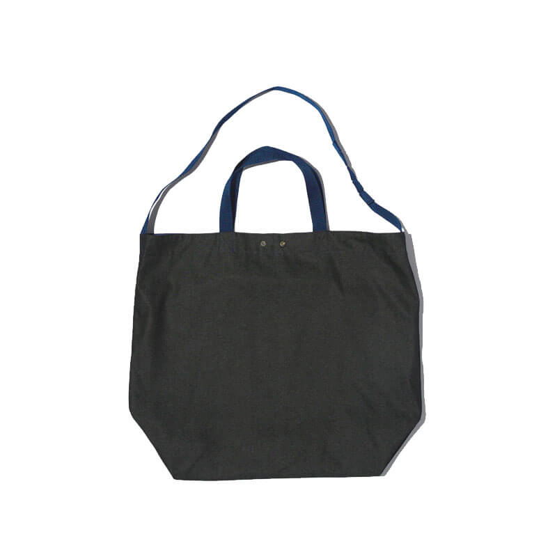ENGINEERED GARMENTS Carry-All Reversible Tote – Indigo: A popular medium-sized bag made from unique denim fabric from Engineered Garments. Features dual carrying straps and branded snap button closure. The shoulder strap is sewn into a bellows shape, allowing it to be adjusted to the desired length by cutting the sewn thread.