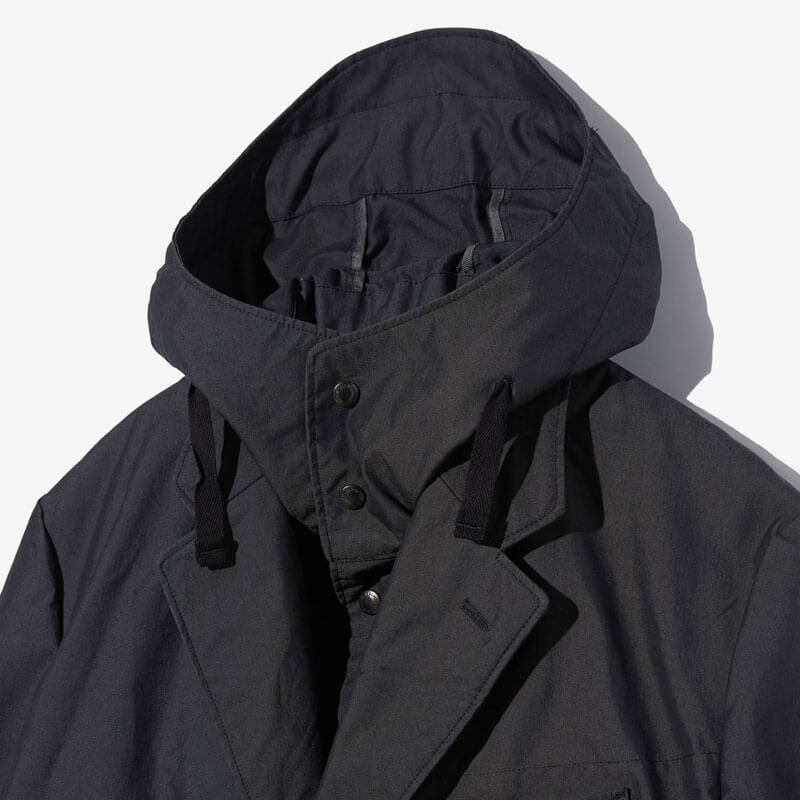 Originally designed as a 19th-century gentleman’s overcoat, the Chesterfield serves as the foundation here—but Engineered Garments gives it a contemporary edge with utilitarian updates like a detachable hood and rear flap pockets.