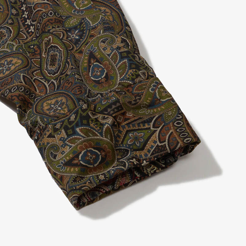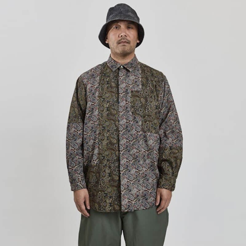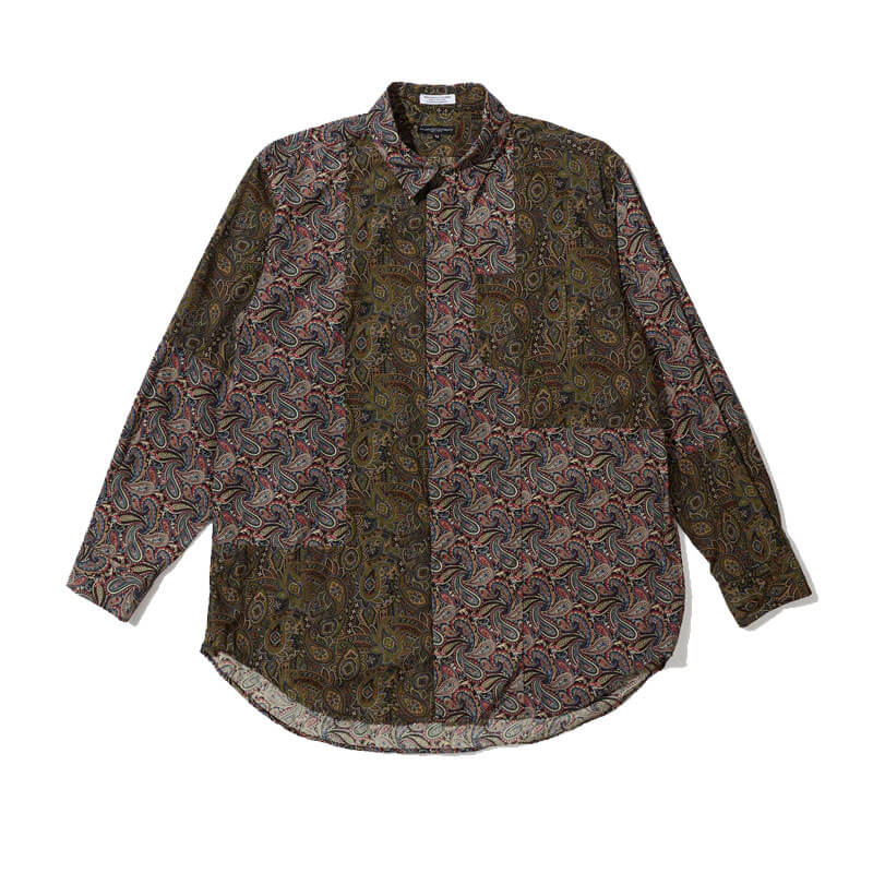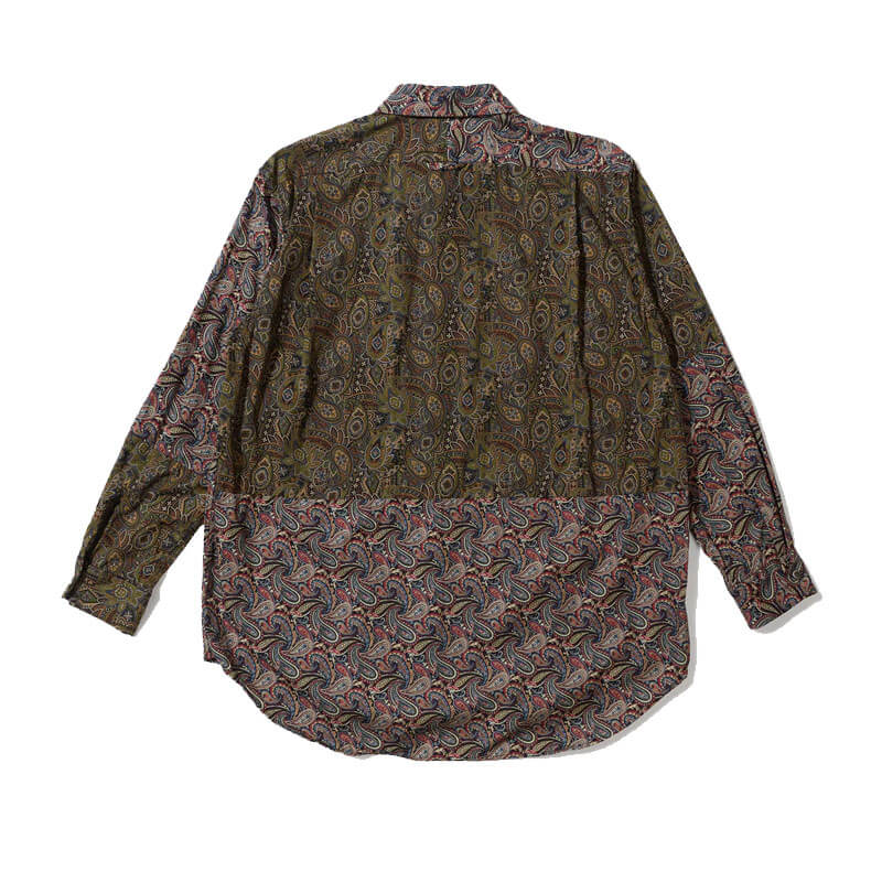 Included in Fall24 collection, this ENGINEERED GARMENTS Combo Short Collar Shirt – Olive / Black Paisley features: