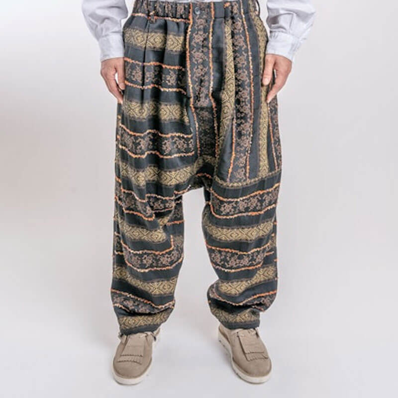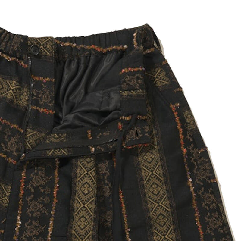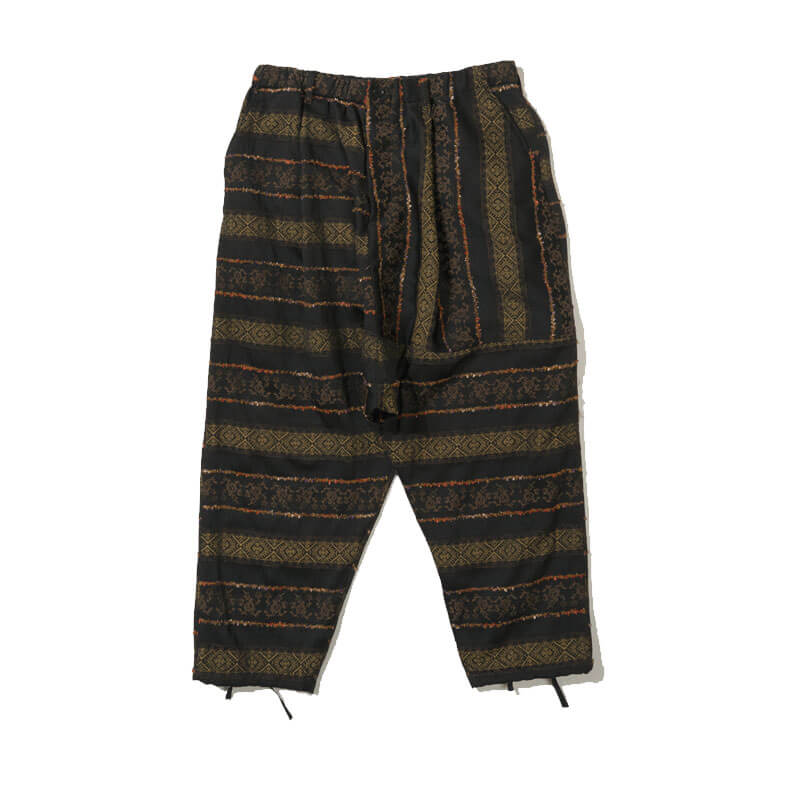 Included in Fall24 collection, this ENGINEERED GARMENTS Sarrouel Pant – Black Ethnic Jacquard features: