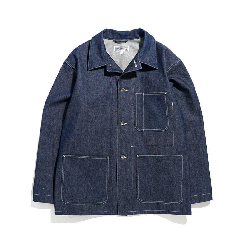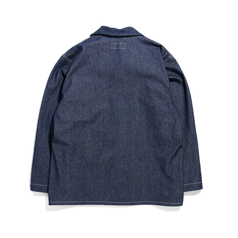ENGINEERED GARMENTS WORKADAY Utility Jacket – Indigo 12oz Denim: The Utility Jacket from Engineered Garments Workaday is back again this season in two different fabrications. This piece is based on an American workwear staple, the chore coat, it has three patch pockets, button fastenings and a loose fit.