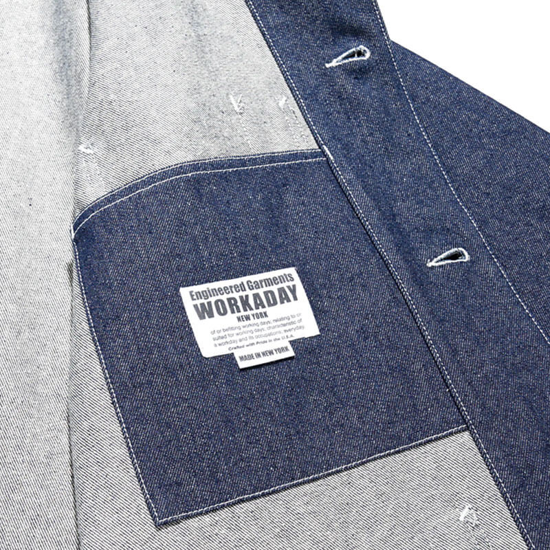 Included in Fall24 collection, this ENGINEERED GARMENTS WORKADAY Utility Jacket – Indigo 12oz Denim features: