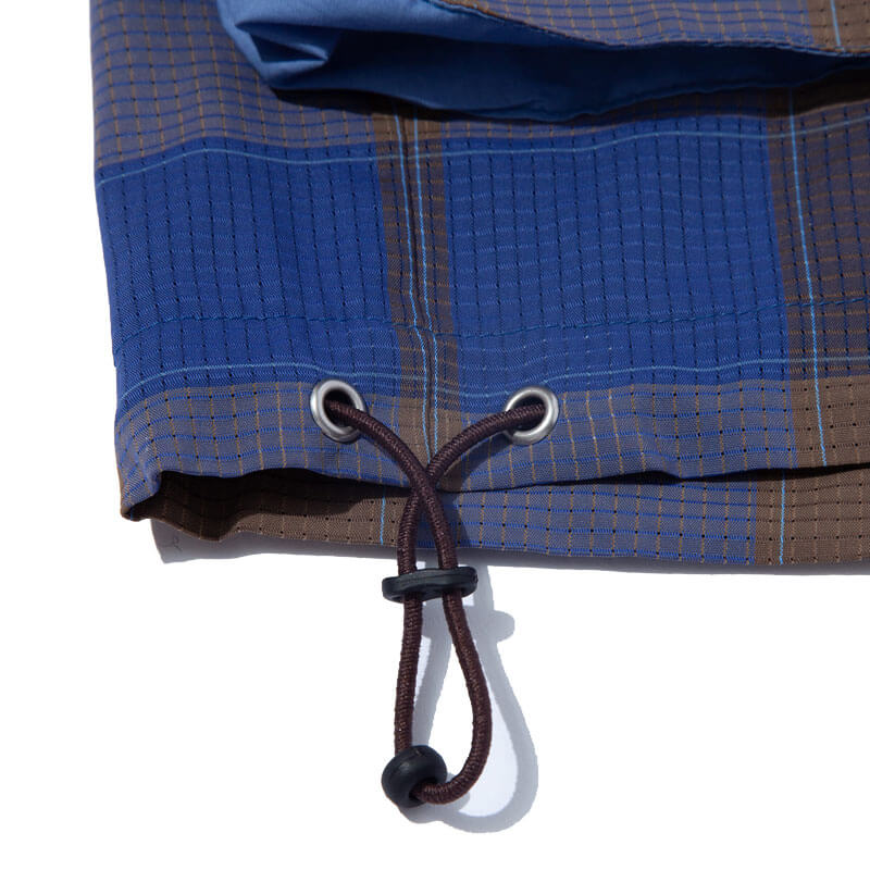 F/CE. Dotair Check Short – Beige: Short pant cut from a original F/CE yarn-dyed, special Dot Air fabric, A functional material with excellent comfort due to the mesh structure / ventilation holes and water-absorbing and quick-drying properties. Featuring a relaxed silhouette with drawcord at the waist and three-dimensional pockets made of a different material.