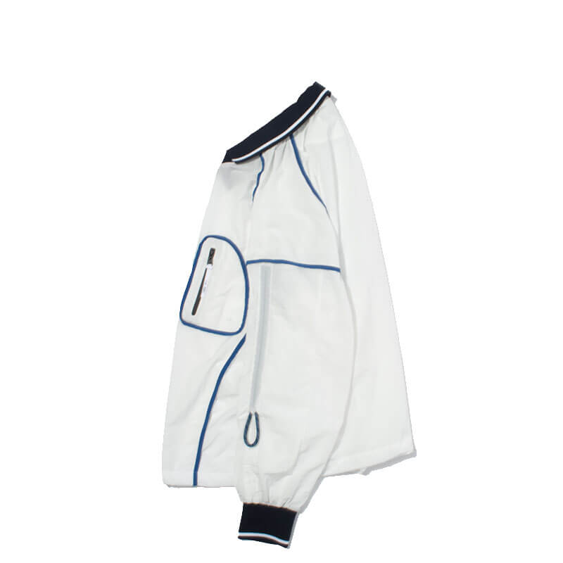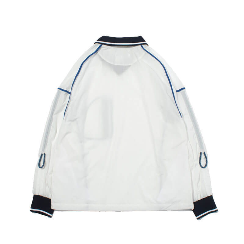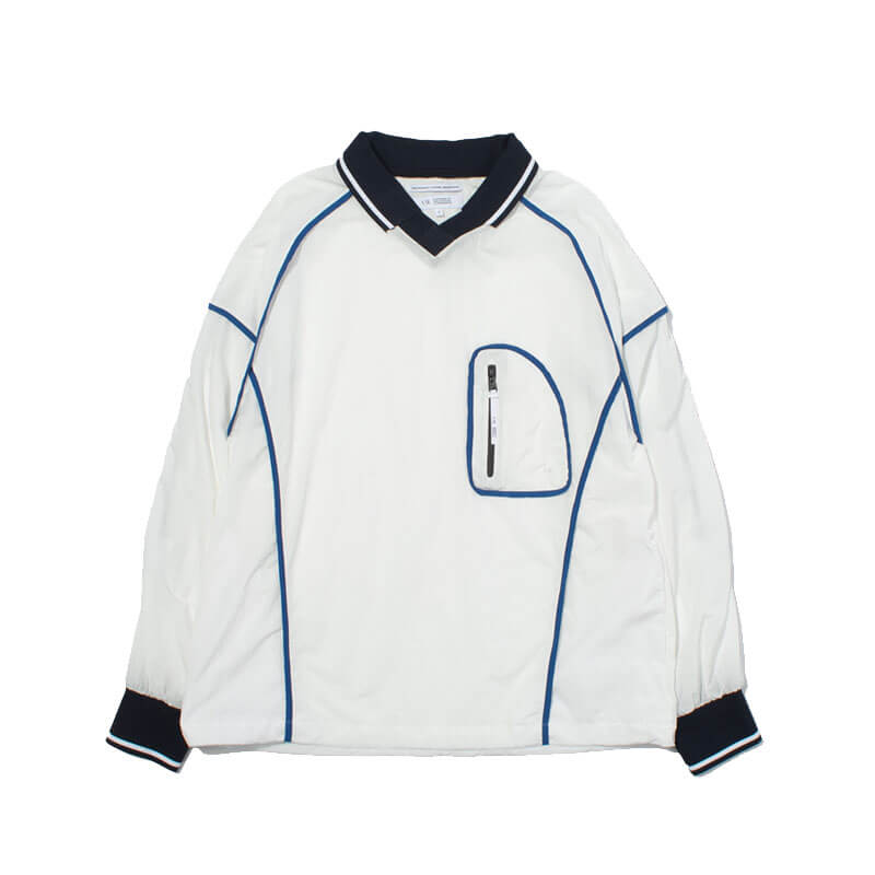 F/CE. Shrink Nylon Game Shirt – White: This game shirt embodies F/CE.’s theme for the season, featuring an outseam design and ribbed details reminiscent of vintage game shirts. Crafted from ultra-lightweight nylon material, it boasts a natural texture and water-repellent functionality, making it perfect for sporty, light wear. The fabric is wrinkle-resistant and easy to care for. This game shirt combines vintage-inspired details with modern functionality, providing a stylish and practical option for various occasions.