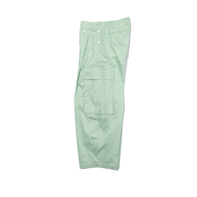 Included in the last Spring25 delivery of the Japanese brand, this F/CE. Solotex Pigment-Dye Cargo Trouser – Mint Green features: