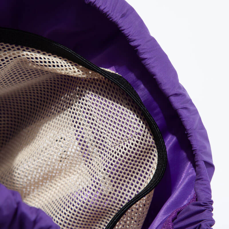 This eye-catching design with bright colors features a drawstring type and compact size. The bottom is oval shaped to increase capacity, creating a space larger than it looks.