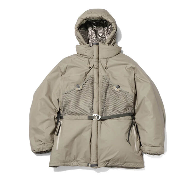 GOLDWIN 0 Windstopper Padded Composite Parka – Dune: Goldwin 0’s FW25 collection merges performance with design innovation. A lightweight insulated outerwear piece with an oversized silhouette. The lightest ripstop fabric from WINDSTOPPER by GORE-TEX LABS 2-layer laminate is paired with PrimaLoft insulation. Designed with functional details such as mesh pockets, an insulated tube flap, a detachable face cover, and a waist belt with a custom metal buckle.