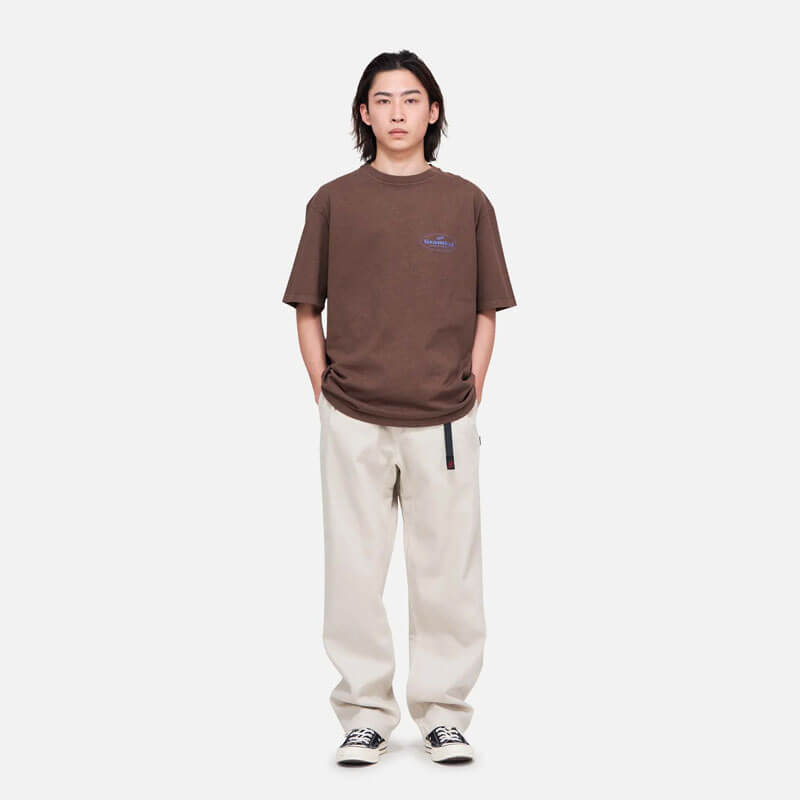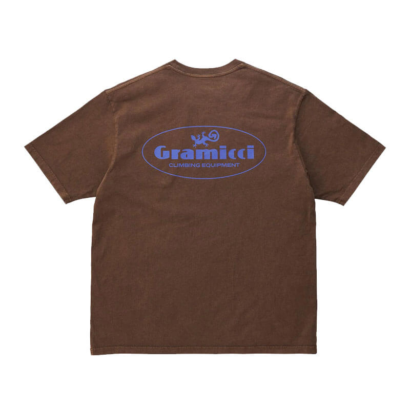 Included in the last Spring25 delivery, the GRAMICCI Climbing Equipment Tee – Brown Pigmented features: