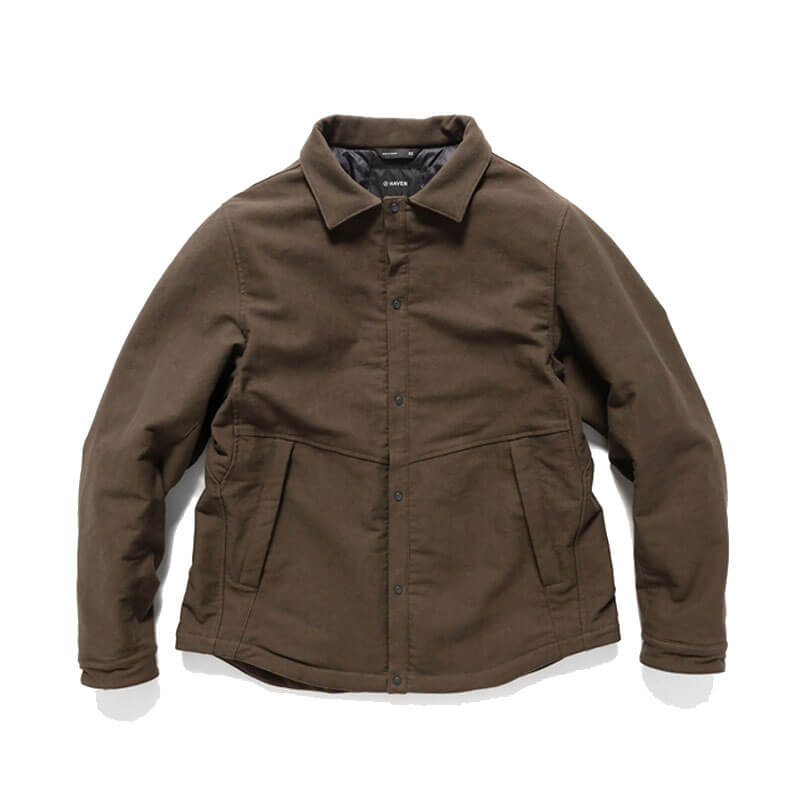 HAVEN Psylo Overshirt – Earth: The Psylo Overshirt is designed for versatile layering, functioning as both a mid-weight jacket and an insulating mid-layer. Built for changing conditions, it provides lightweight warmth and breathable, windproof protection with WINDSTOPPER® products by GORE-TEX LABS and Primaloft® Gold insulation. The Japanese Washed Canvas offers durability with a soft, broken-in feel, while a refined collared design enhances coverage. Gusseted construction ensures unrestricted movement, making it a practical choice for everyday wear.