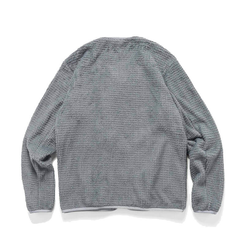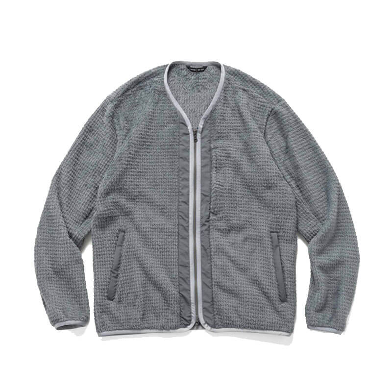 - Low neck cardigan silhouette meant as a lightweight midlayer