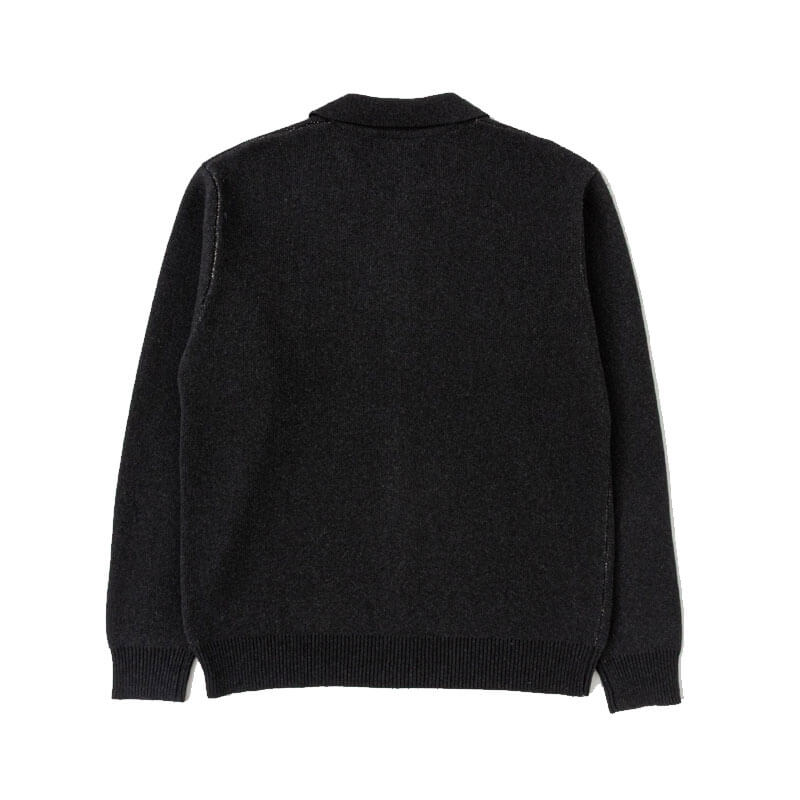 HERESY Chain Knit Shirt – Charcoal: Jacquard knitted zip shirt in charcoal cotton yarn, featuring ‘Chain’ graphic on the front and YKK zip.