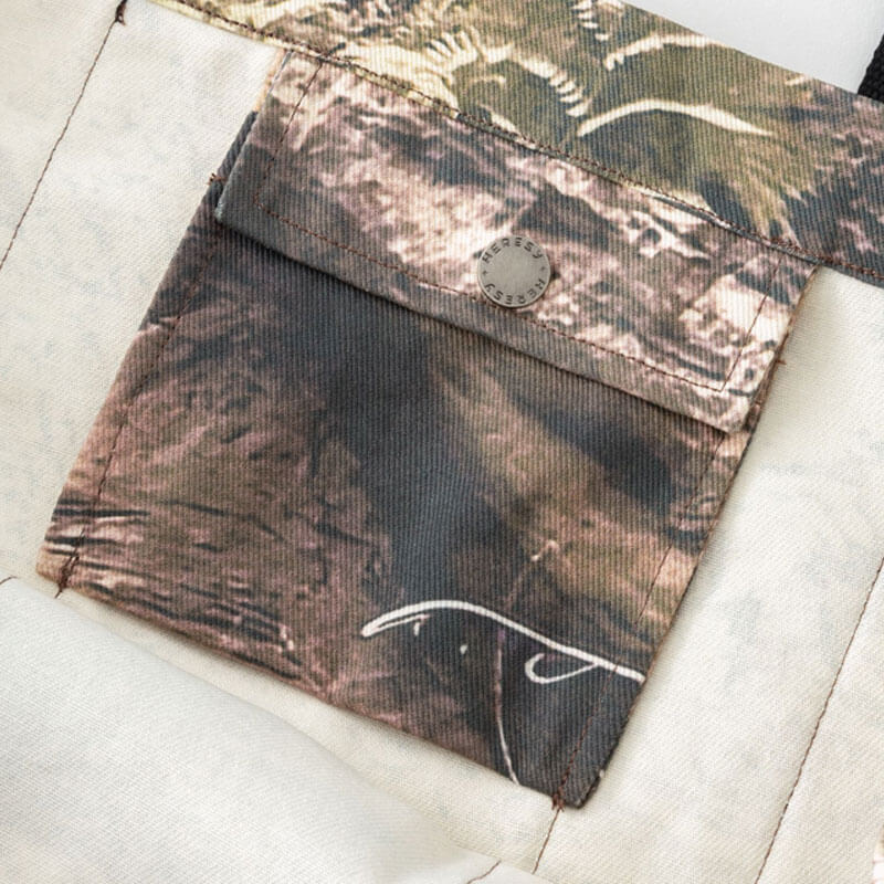 Dominic Owen and Jasper Dunk founded HERESY in 2012, in Peckham, London. Now, based on South England, HERESY produces seasonal clothing collections heavily influenced by the research and exploration of Folklore. Since the start of the company, HERESY has been operating in an ethically conscious manner. Their garments feature bold graphics and illustrations, core to the brand’s visual identity, including hand-drawn sketches, airbrushed visuals, and mosaic-like collages. As well as clothing they make handmade art objects, produce events, program music projects, and print small-press publications.