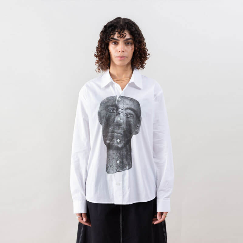 Dominic Owen and Jasper Dunk founded HERESY in 2012, in Peckham, London. Now, based on South England, HERESY produces seasonal clothing collections heavily influenced by the research and exploration of Folklore. Since the start of the company, HERESY has been operating in an ethically conscious manner. Their garments feature bold graphics and illustrations, core to the brand’s visual identity, including hand-drawn sketches, airbrushed visuals, and mosaic-like collages. As well as clothing they make handmade art objects, produce events, program music projects, and print small-press publications.